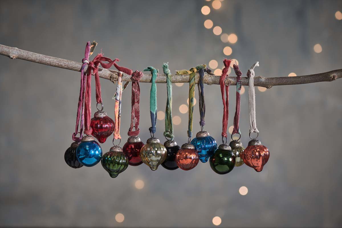 The vibrant antique looking colours of these stunning Dew Drop baubles capture all the tones...